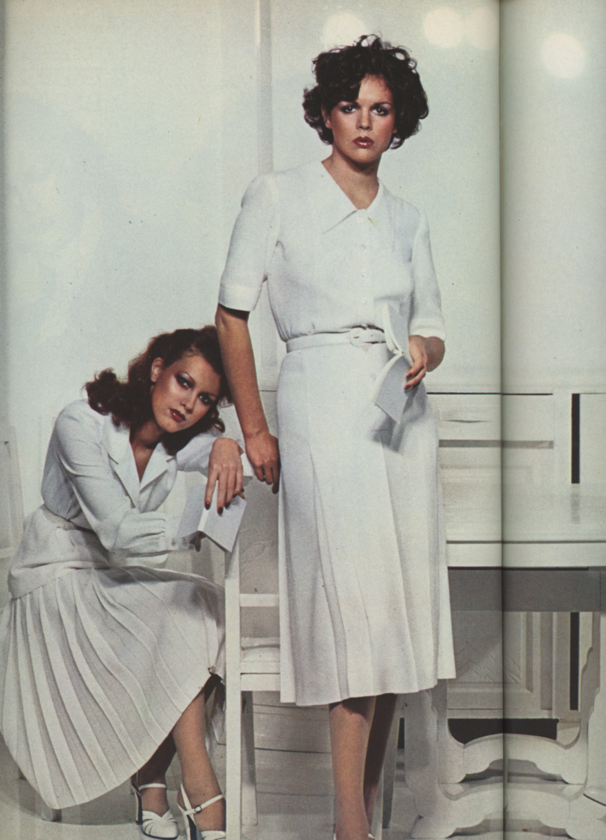 One sits, one leans. One of the marginal differences present here. White room, white chair, white bookshelf, white books, white clothes, white everything. Rendered white, figures, objects and subjects omit detail, appearing empty like evacuated props. Utterly theatrical, the scene sits in its own starkness, contrasting with Marilyn’s moment. Staring at the camera, stagy, vacuous, the two women show that they know that they’re being looked at. Looking at you looking at them. But, still, why are the books there? A study in composition? A practice in strategy? Yet is form enough to perpetuate its own negation?